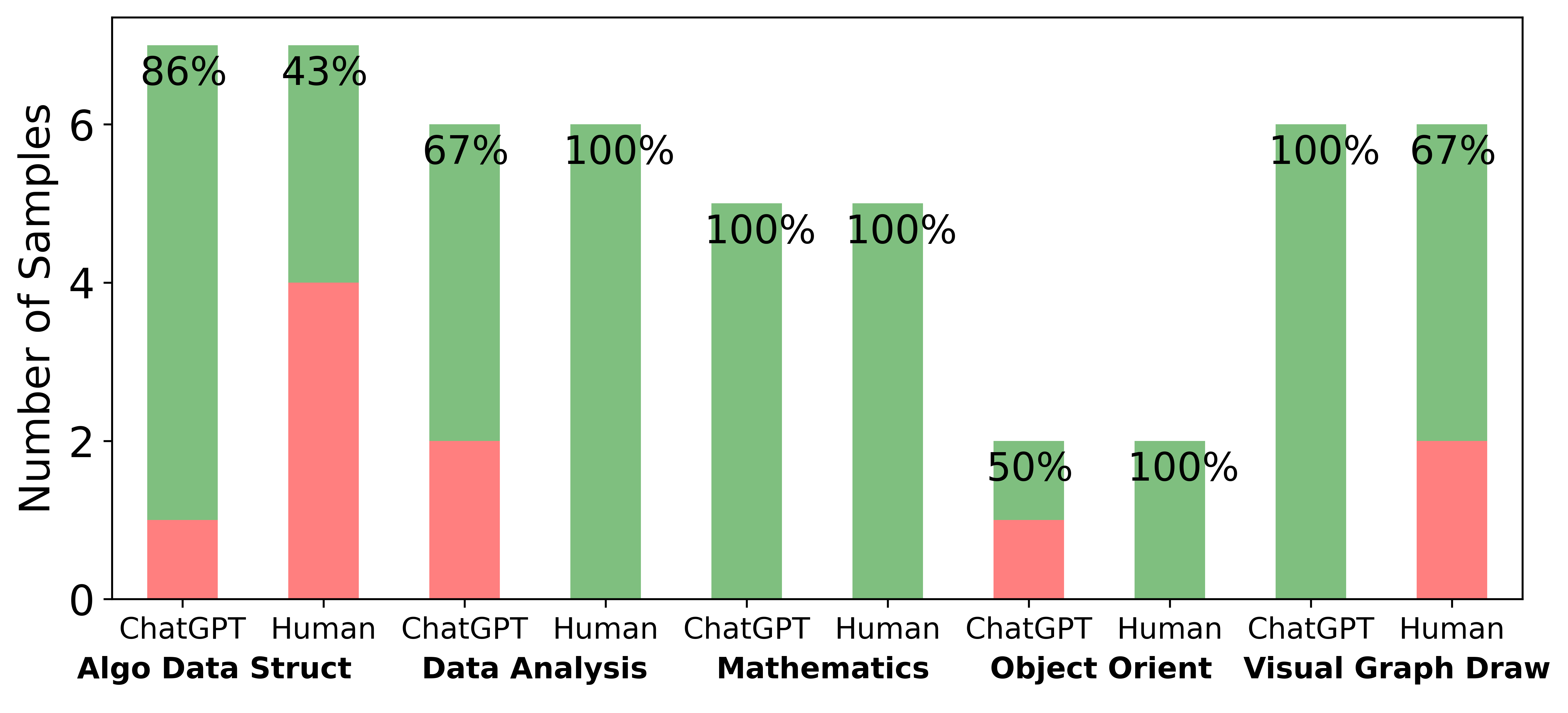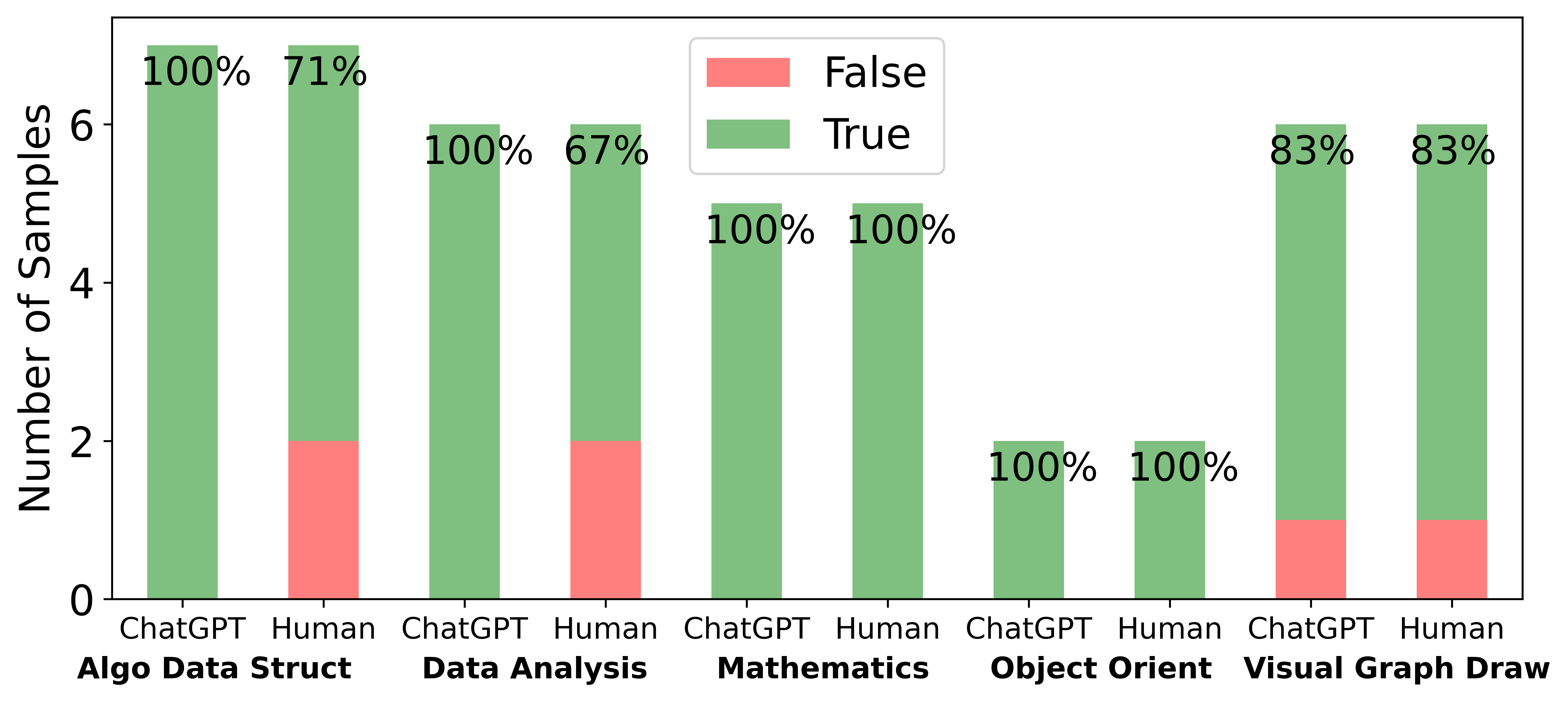 - Comparative Analysis with Human Code: We conduct a comparative analysis between ChatGPT-generated and human-written code across 131 prompts in five categories, revealing both limitations and strengths in ChatGPT’s code generation across different categories of code.
