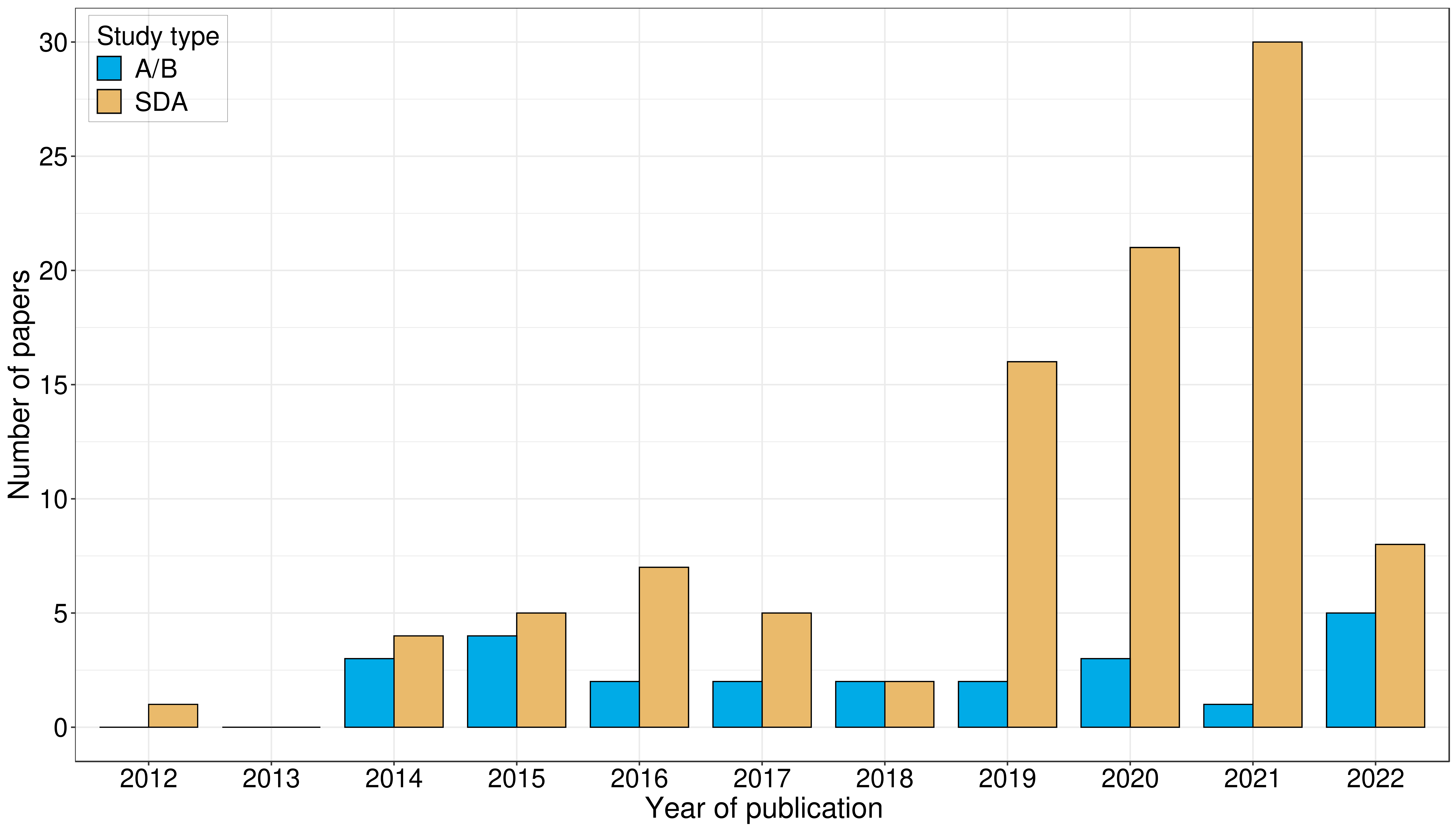 Figure 1. The number of A/B and SDA studies across years