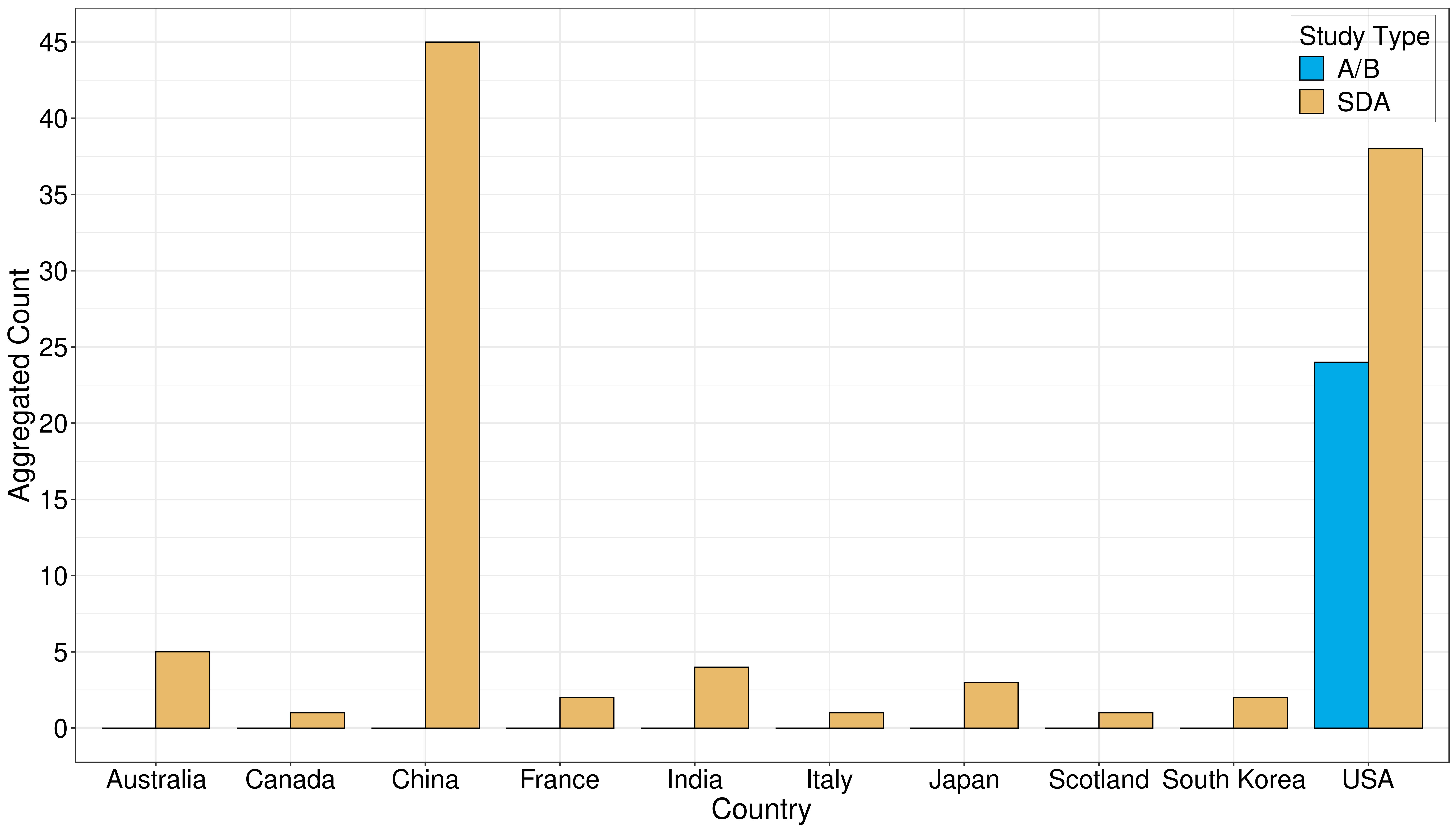 Figure 3. Number of A/B and SDA studies across countries