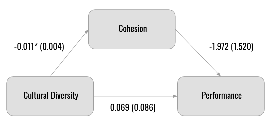 - Does cultural diversity have a significant association with performance and does cohesion mediate this relationship?