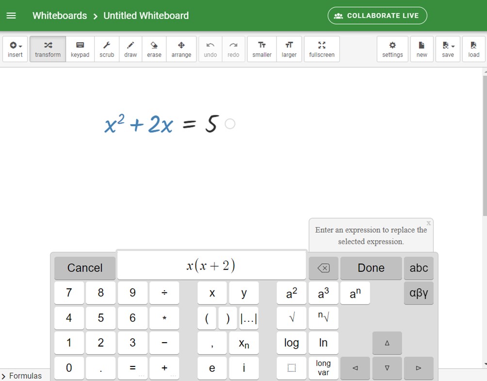 A prototype of a collaborative whiteboard specifically designed for mathematics learning, known as Graspable Math (GM) Collaborative Whiteboard, allows students to work on the same math problems or content in real-time and interact with their peers simultaneously on a digital whiteboard. Previous work has explored how students’ different behavioral patterns in a gamified version of GM are related to students’ mathematical knowledge and efficiency. The findings indicated that some in-app behaviors provided meaningful information to students’ algebraic understanding and learning [29, 30]. However, these analyses were limited to individual students’ problem-solving.